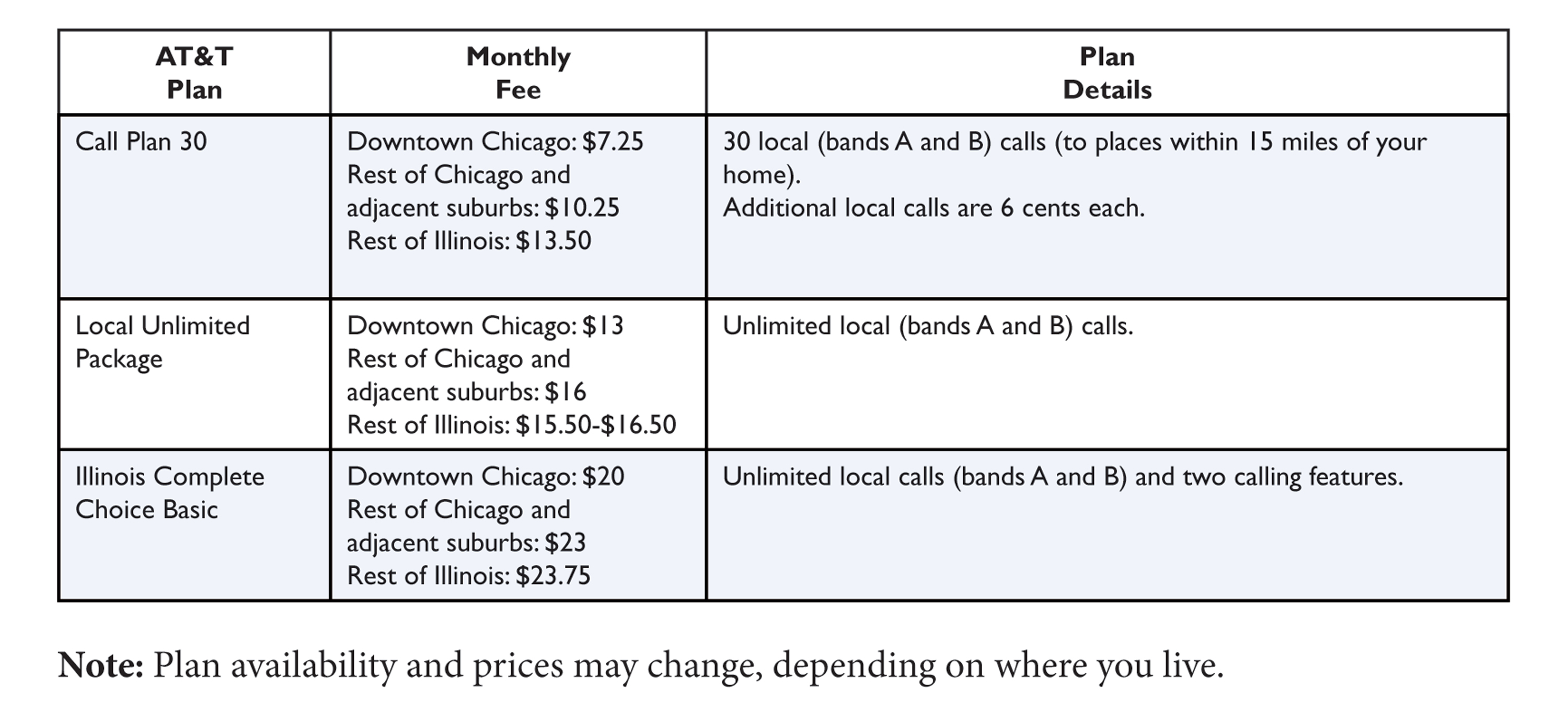 Cellphones: Most cellphone plans include unlimited talk and text, with data usage fees. Not including the cost of the phone itself, a single plan with unlimited talk and text and data usage ranges between $30 and $80, including monthly line fees. These are averages. Prices will vary based on the number of lines, and data plans vary across networks. Unlike traditional landlines, cellphones need to be charged, they can be plagued by poor service in “dead zones,” and they may leave 911 dispatchers guessing about your location. Advanced 911—which can trace the exact location of a cellphone—has yet to be fully implemented in Illinois.