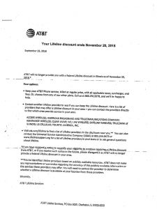 In September, certain AT&T landline customers received a letter from the company with the headline: “Your Lifeline discount ends November 20, 2018.” The federal Lifeline program offers a monthly credit of up to $11.75 for qualifying low-income customers who apply. It appears in the “Plans and Services” section of qualifying bills as the “Lifeline Discount.”