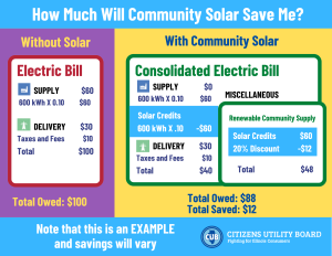 Community solar allows more Illinois consumers to access the benefits of clean energy, and CUB is pleased to see more offers hit the market. This offer includes a 20% savings discount, which is on the higher end of the range. It also offers consolidated billing, meaning everything will be on the ComEd bill. We recommend comparing multiple offers and reading your contract thoroughly before signing up. We have also heard reports of door-to-door marketing. We recommend accepting marketing materials so that you can do more research later, rather than signing up at the door.