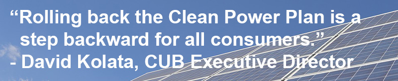 The Clean Power Plan, which was announced under the previous administration in 2015, aimed to cut carbon pollution from power plants by 32 percent. At the time, CUB Executive Director David Kolata said that even if Climate Change were not part of the debate, the plan included the steps the country had to take to help consumers get more control of their power bills.
