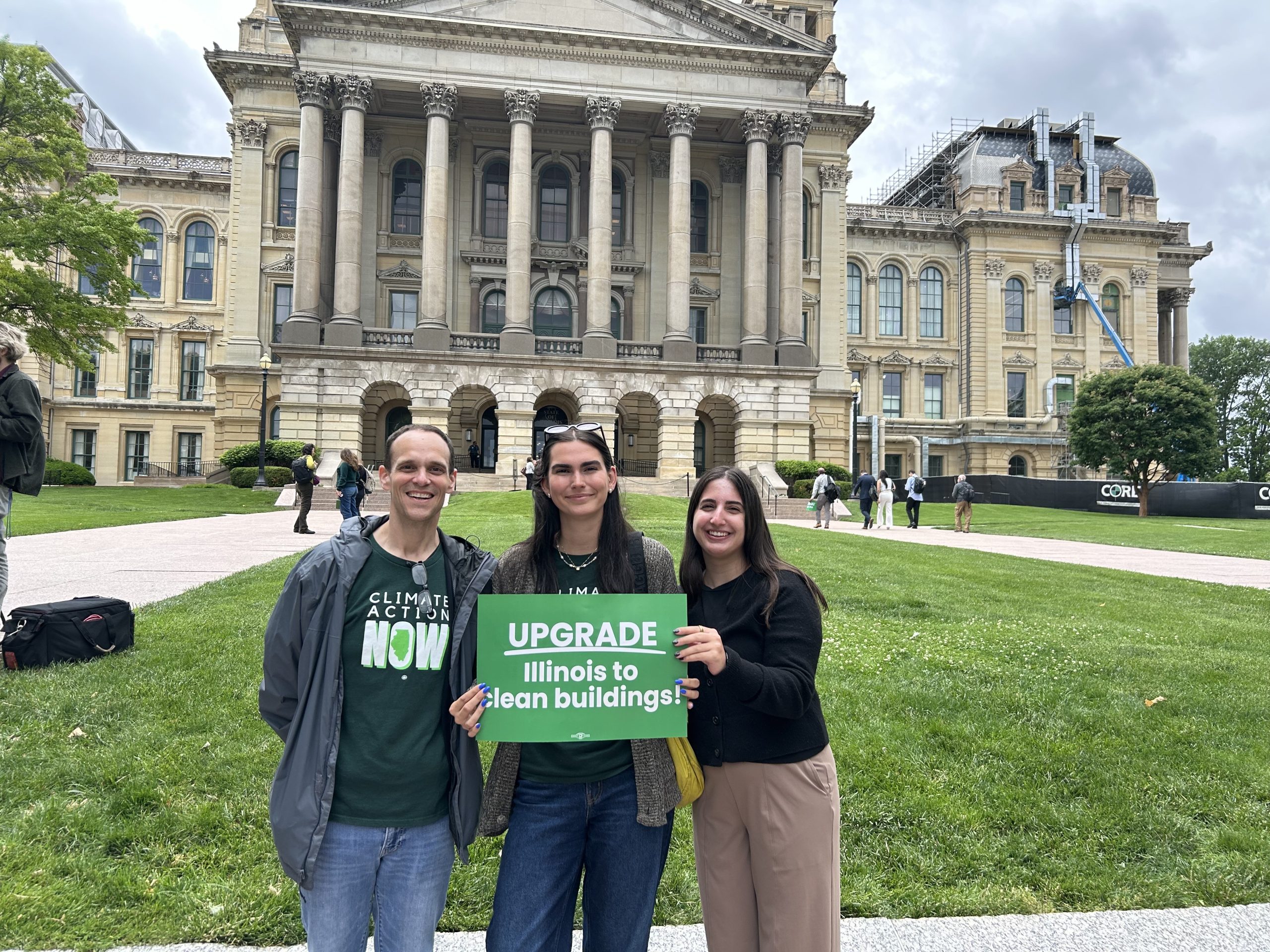 Members of CUB’s Outreach–Scott, Marina and Zoe–helped push for legislation to improve energy efficiency and lower utility bills in Springfield.