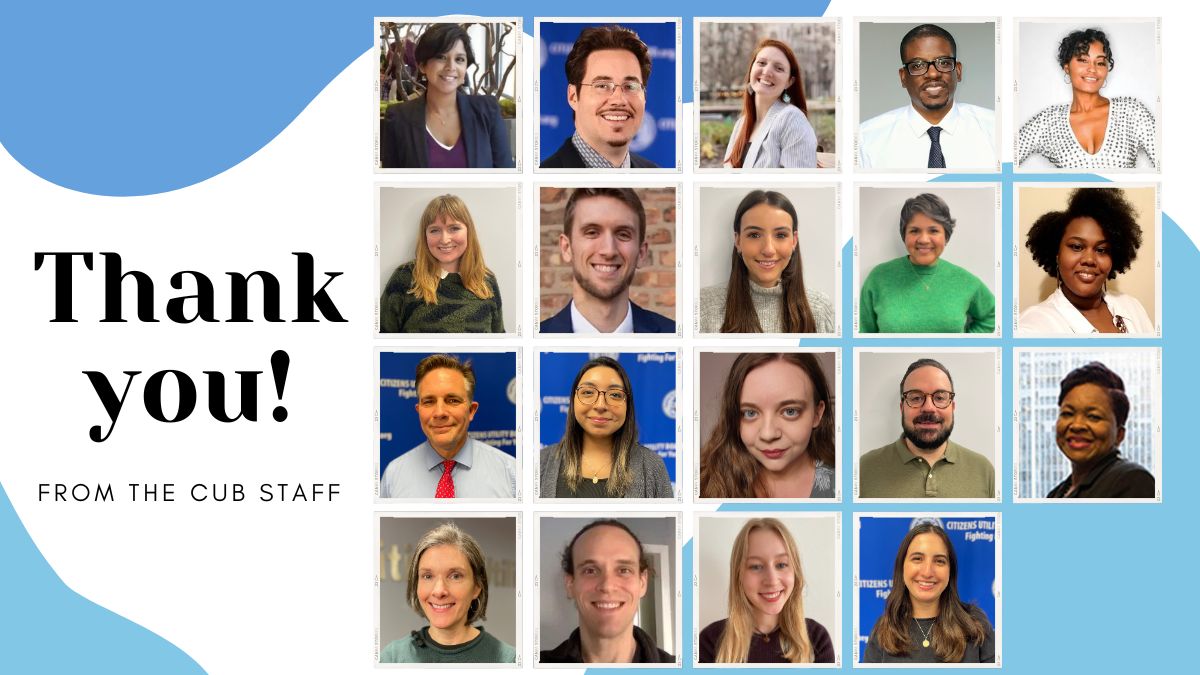 The CUB team thanks all Illinois consumers for their generous support of the work for lower utility bills, consumer protections and cleaner energy. We are grateful!
