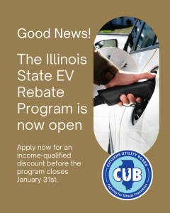 Are you in the market for a new electric vehicle? You’re in luck– the Illinois Environmental Protection Agency ‘s Electric Vehicle Rebate program is open for rebate applications between now and January 31st. The income-qualified program’s rebate amounts include: