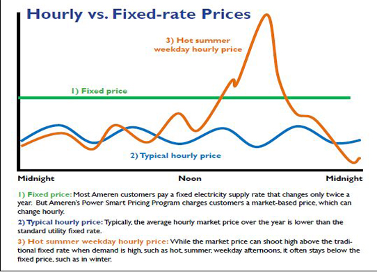 Ameren traditionally charges residential customers default fixed electric supply rates that change two-to-three times a year. PSP customers pay a market price that can change every hour, and the price for each hour of the day is set the night before.